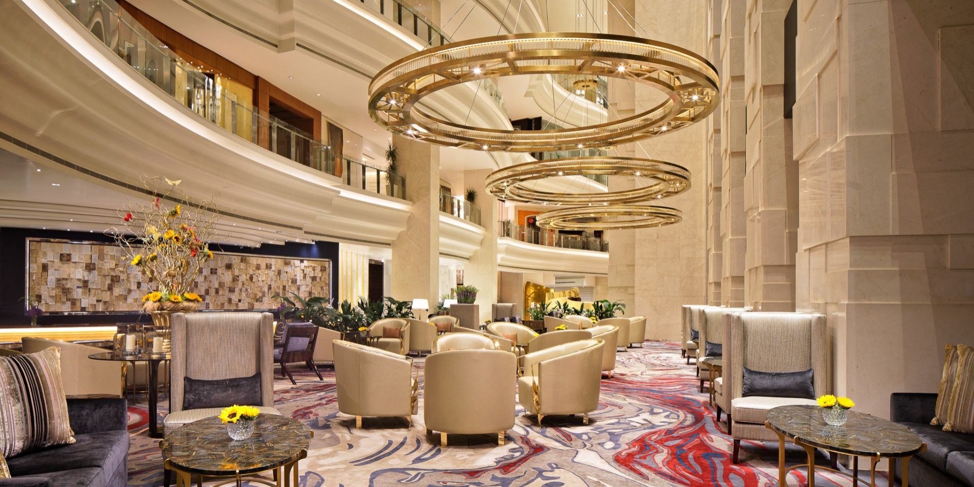 In addition to the rooms, our company was fully involved in all the gypsum work to the stunning 4-storey high atrium within reception, and also the fit-out of the Horizon Club Leisure Lounge boasting rich Macassar ebony veneers and granite stonework, all supplied, fitted and project managed by our own in-house projects team.